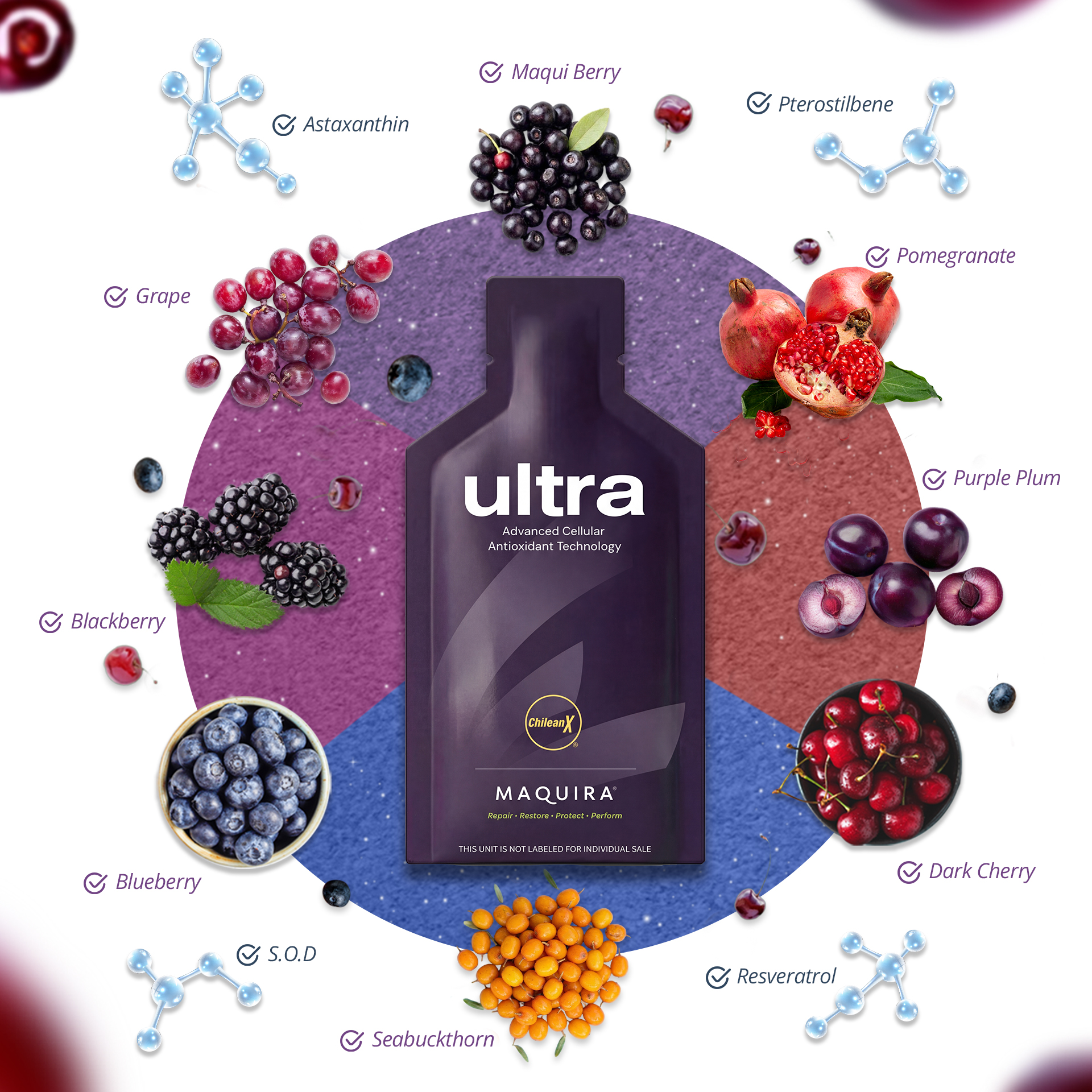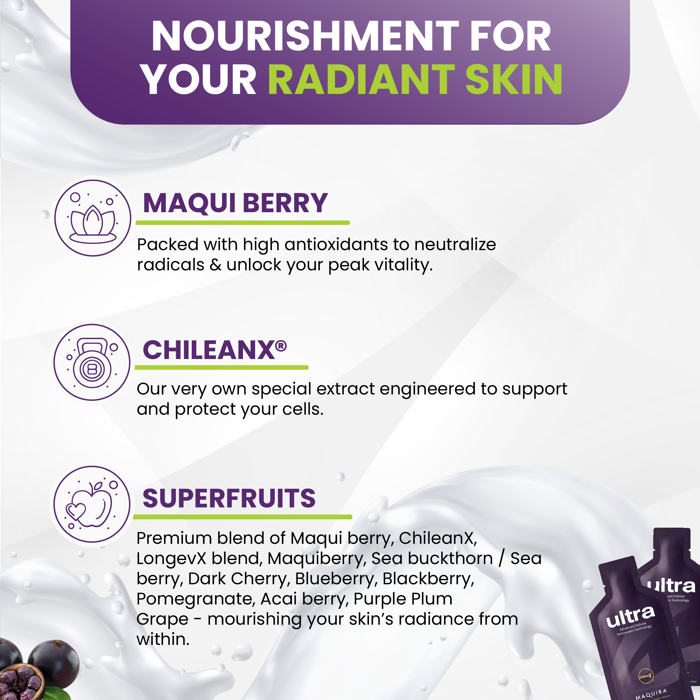At its core lies Maqui Berry, one of nature’s most potent antioxidant superfruits, enhanced with ChileanX®, Maquira’s proprietary high-potency extract. This powerful foundation is further elevated by LongevX® Blend—a precision-designed longevity system—now integrated with OMEGAPEX®, a full-spectrum plant-based omega complex derived from Sea Buckthorn.